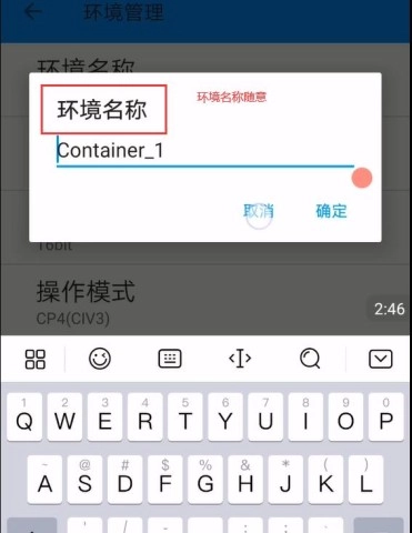 3、在环境名称栏中填写任意名称,比如 Container_1,接着点击确定按钮。