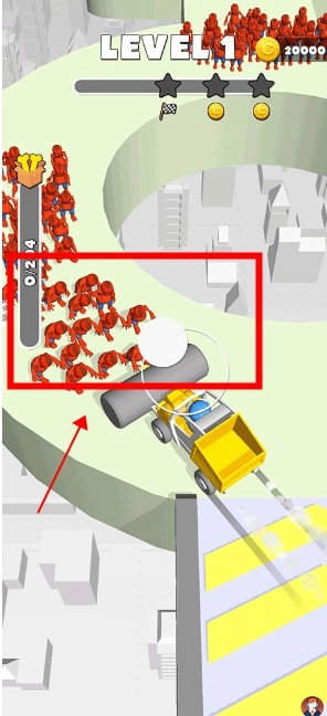 把战车移动到红色小人所在的位置,把小人推到平台外面,等它变成箱子后进行收集,一直到任务完成。