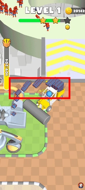 把装满货物的战车开到绿色区域完成卸货,接着把空战车开往标有“H”的平台,就能顺利通关了。