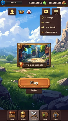 1、进入背包乱斗手机版游戏后,首先要把语言切换成中文,具体操作是点击右上角的菜单,然后选择第一个设置选项。