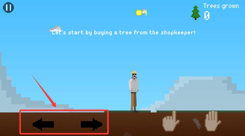 2、通过滑动屏幕两侧控制人物走动,前往种树区域。