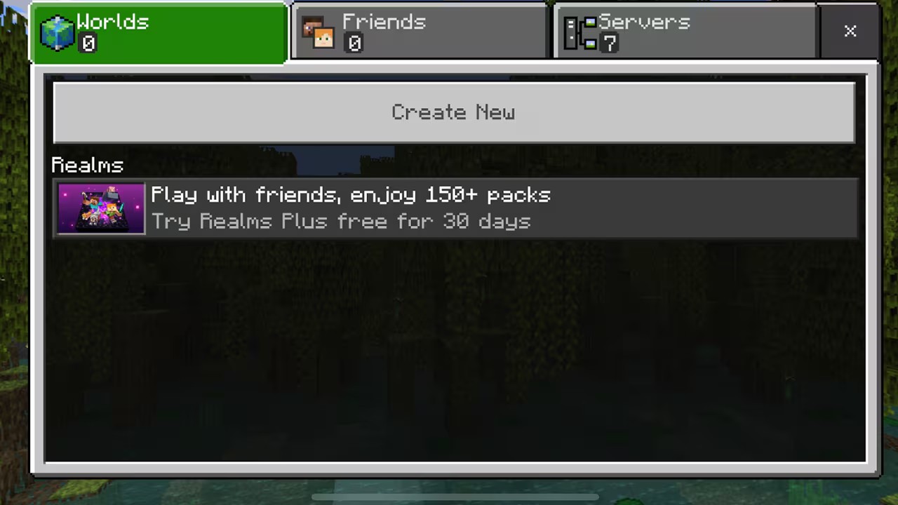 要连接到 Bedrock 版服务器,请启动 Minecraft,然后单击主菜单中的“游戏”。您将被定向至一个界面,该界面包含三个选项卡:“世界”、“好友”和“服务器”。