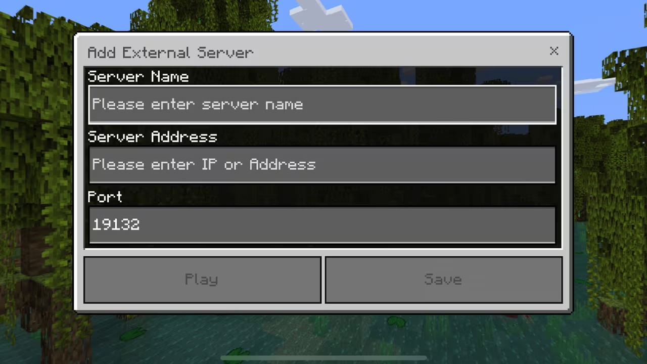 获得地址后,滚动至服务器选项卡中列表的底部,然后单击“添加服务器”。输入名称、地址和端口(如需要),然后单击“游戏”直接连接,或单击“保存”将其添加到服务器列表中,以便将来快速加入服务器。