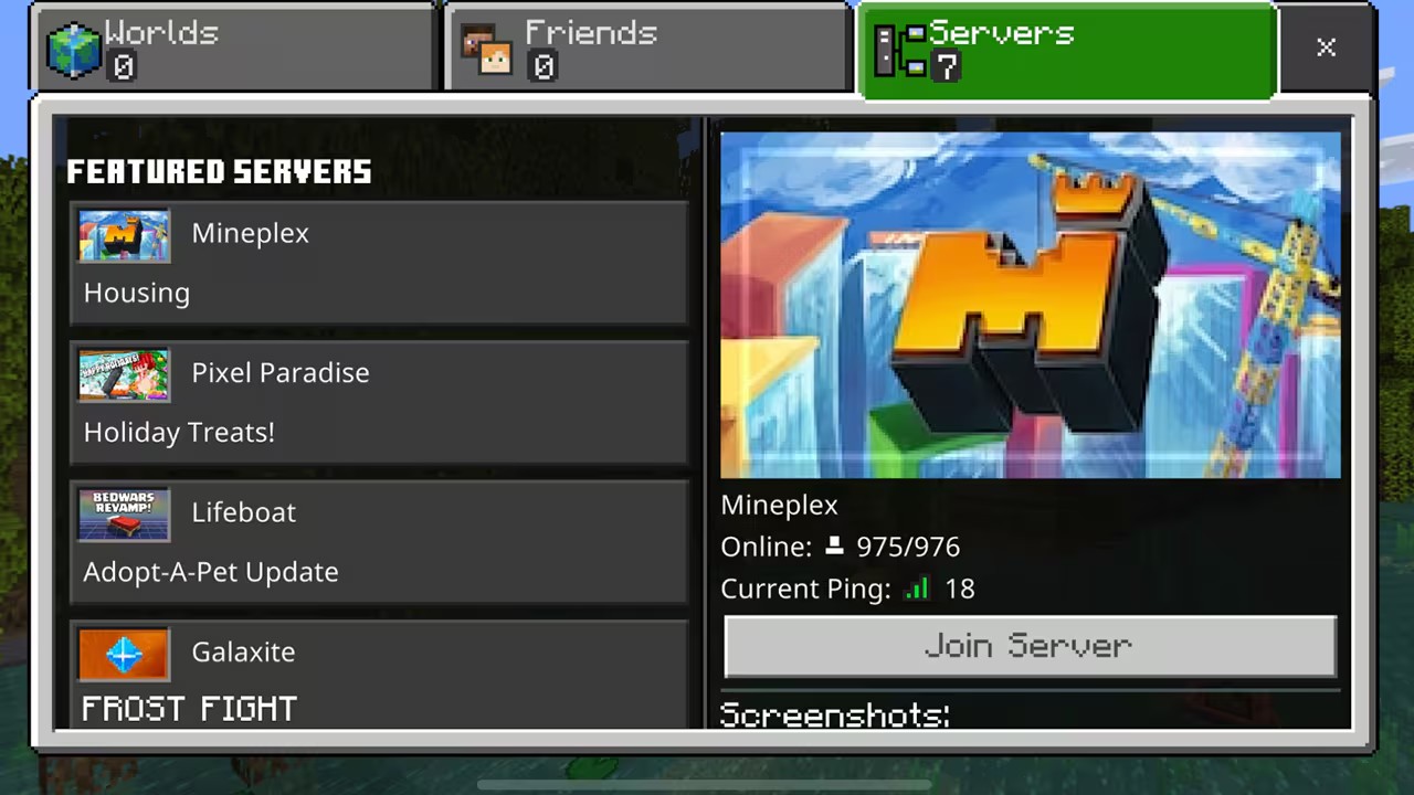 要加入公共服务器,请访问“服务器”选项卡,该选项卡会显示当前在线的精选服务器列表。查看提供的各种服务器,然后单击您最喜欢的服务器上的“加入服务器”按钮。随机显示一个页面,该页面上会显示一些有关在线畅玩时预期内容的警告,单击“继续”继续下一步。下载任何必要的资源包后,即可连接并游玩。