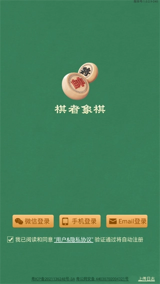 1、在本站安装并打开棋者象棋应用,进入软件后阅读用户隐私协议,确认无误后勾选同意;
