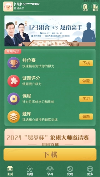 棋者象棋是一款面向象棋爱好者的学习与对弈专属平台,无论你是刚接触象棋的新手,还是经验丰富的高手,都能在这里找到契合自身需求的对弈模式和学习资源。平台不仅提供人机对战、真人实时对弈功能,还涵盖了丰富的象棋课程,从基础规则讲解到高阶技巧解析,助力用户循序渐进地掌握象棋知识,轻松入门且避开学习误区。棋者象棋采用商业级AI技术,支持个性化陪练与智能批改,让学习进度清晰可见。此外,课程还配备了针对性的练习题,帮助用户巩固每一个知识点,扎实提升象棋水平。