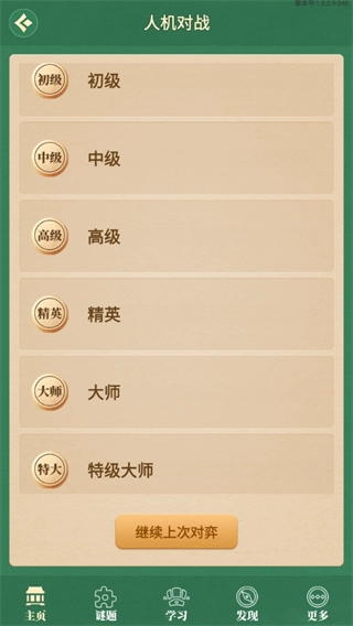 5、点击后选择所需的人机对战强度,建议用户可先从简单难度入手;