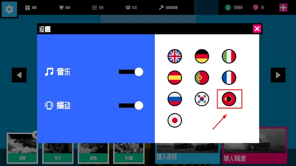 2、在右侧选择中国国旗,语言就能切换成简体中文了。