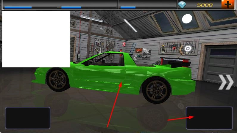 1、进入车库界面后,挑选心仪的赛车,查看其外观细节,接着点击箭头按钮即可进入比赛环节。