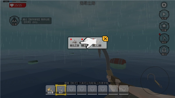 玩家需要利用钩子勾住海洋里漂流的物品,收集这些物资来制作实用的工具。