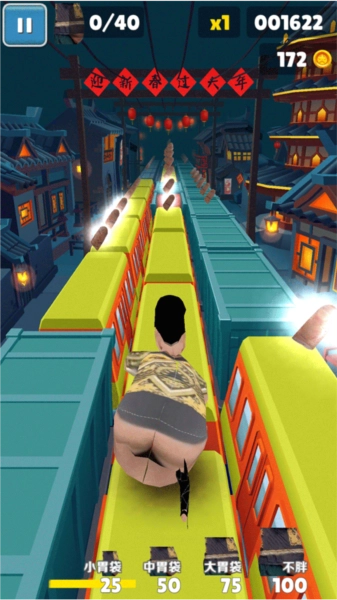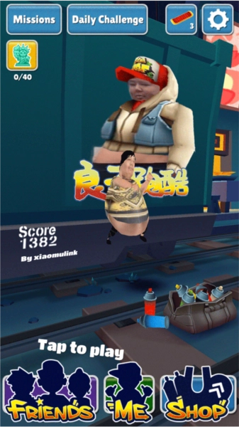 良子跑酷味真族是一款以网红良子为主题魔改的地铁跑酷游戏,原来的主角杰克换成了大胃袋良子,跑酷途中的金币也变成了良子爱吃的焖子。玩法上没太大变动,你得避开障碍物,收集更多焖子,让良子的体型慢慢变大!