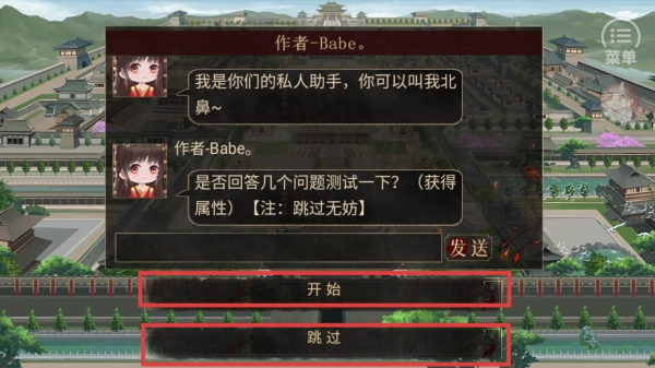 2、点击【开始】按钮进入测试环节获取属性,若点击【跳过】则会直接进入剧情部分。
