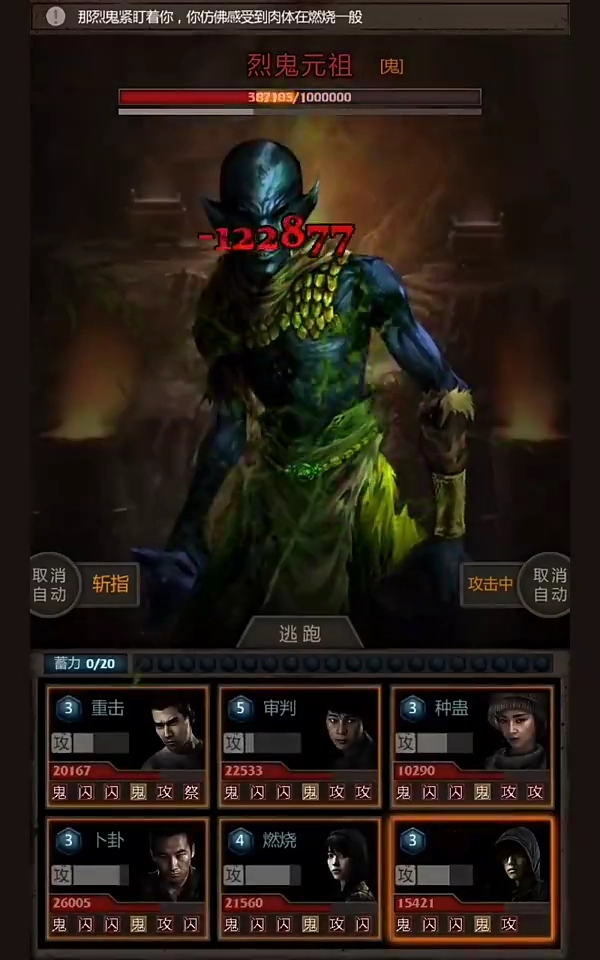 1.魔窑20层的烈焰元祖,直接用打小怪的万能公式就行:开局让苗姜献祭,之后一直用斩指技能,药品备几个乱鬼膏就够,甚至不用药也没太大关系。
