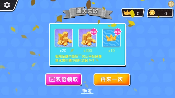 4、每关通关后会有金币奖励,观看视频能获取双倍金币,若对结果不满意还可以重新挑战一次。