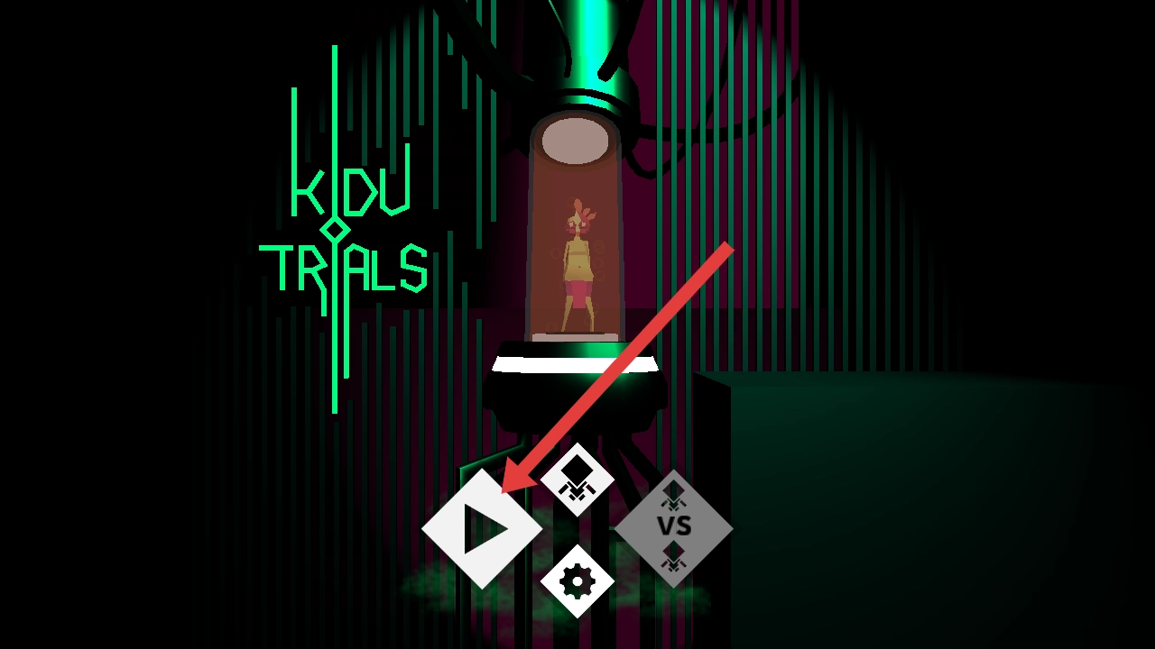 1、在进化实验的游戏主界面,点击箭头所指的白色三角形按钮,即可启动游戏开启冒险之旅。