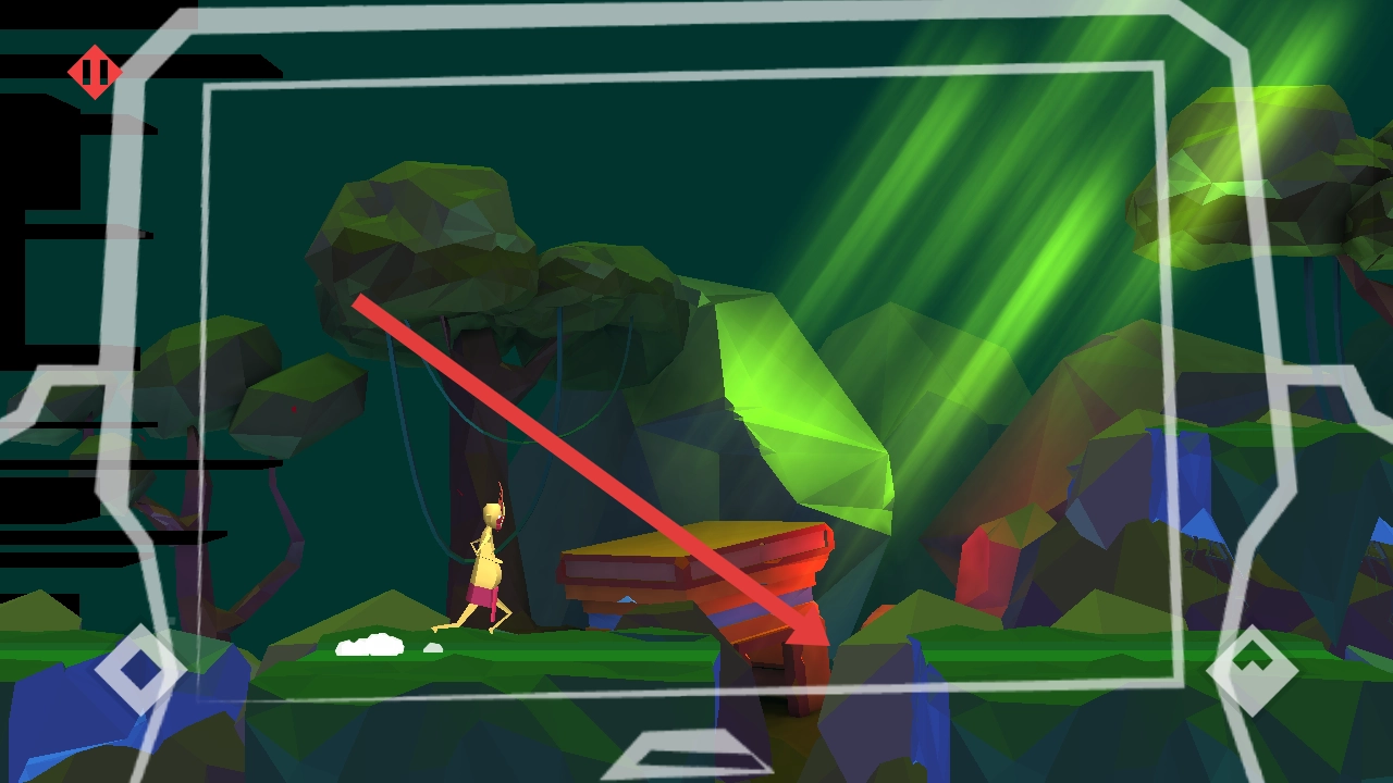 进入森林场景后,操控角色移动,朝着箭头所指的红色平台方向靠近,同时探索场景里的互动元素。