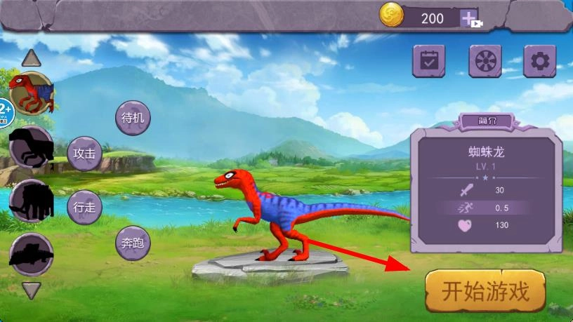 进入游戏后,先挑选初始恐龙的种类,熟悉它的基础属性和操作方法,接着在新手区域练习移动、攻击、觅食等生存技能,开启恐龙的生存冒险。