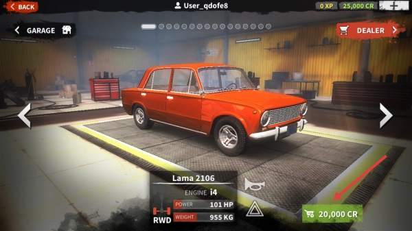 3、到车库挑选橙色的【Lama2106】款车辆,支付【20,000CR】完成购买后,就能用它进行后续的驾驶操作了。