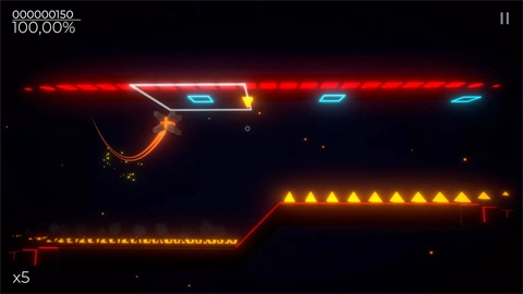 1、把跑酷动作和电子音乐节奏进行深度融合,要在鼓点与旋律里精准把控跳跃时机,每个障碍物的出现及移动都跟音乐节拍保持同步。