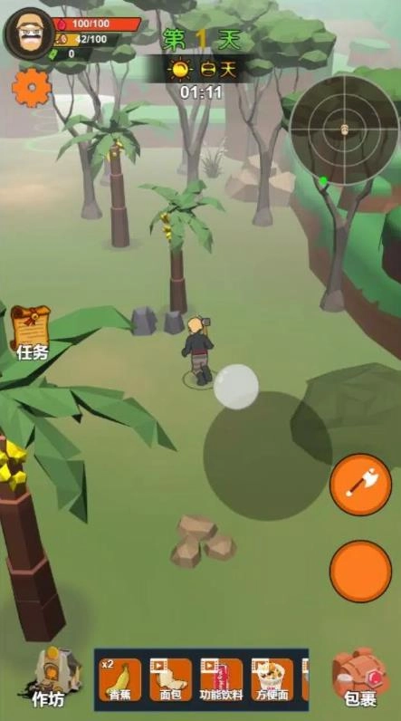 1、收集自然资源,打造工具和武器,提高生存效率。