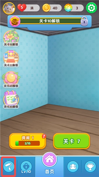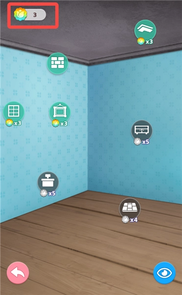 3、点击下方第一个图标进入装修界面,目前我们拥有的花币可以装修亮起来的部分,选择一个部分。