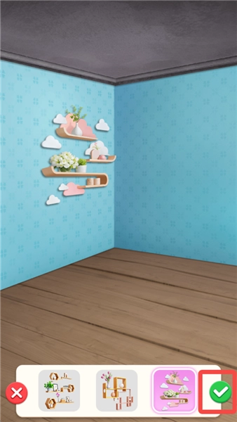 4、选择喜欢的装修选项,点击【√】即可。