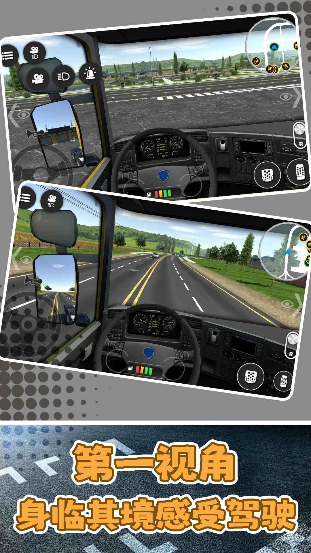 1、支持第一视角驾驶模式,使玩家能够身临其境地体验重型车辆的驾驶过程,有效提升游戏的代入感与驾驶体验感。