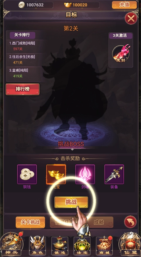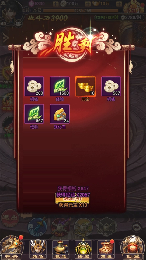 3、过关送仙魔双剑,还有海量元宝、材料。