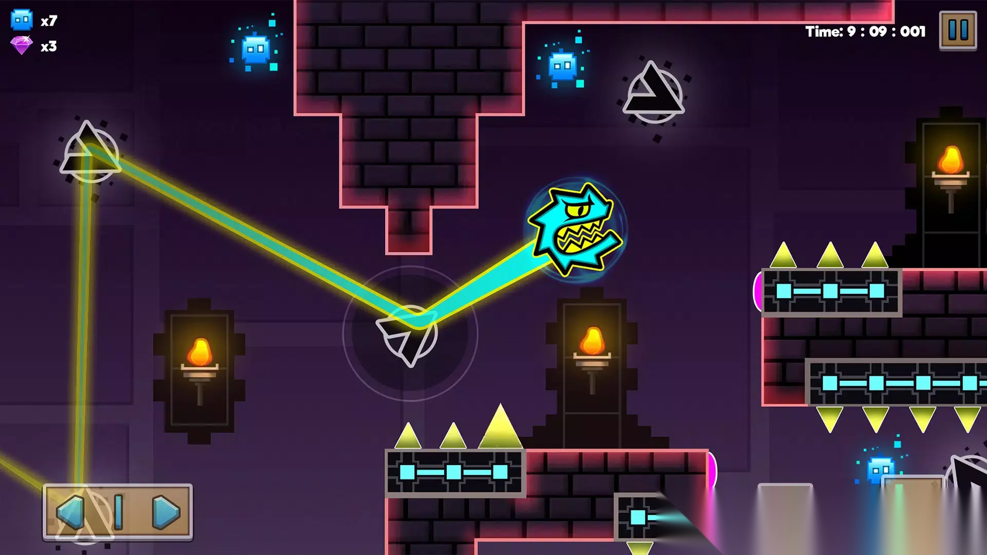 1. 玩家得在快速移动时精准把控跳跃与冲刺的时机,方可顺利躲开尖刺和陷阱,完成关卡的挑战。