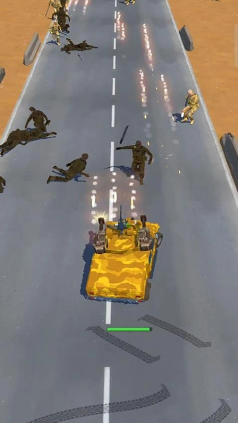 1、借助虚拟摇杆或重力感应操控坦克行进,在公路上避开障碍物与敌方火力;