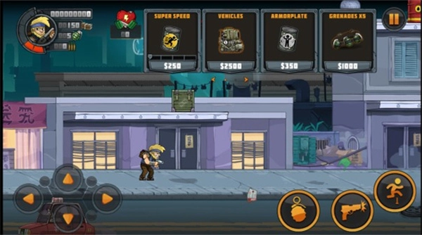 3、进入游戏关卡后,操控角色移动、跳跃与攻击,借助不同类型的枪械和手榴弹,能够更快速地消灭敌人。