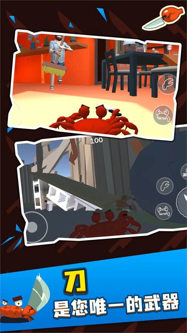 在《螃蟹游戏》里,你会化身为一只古灵精怪的螃蟹开启冒险之旅——此刻的你是只气冲冲的螃蟹,要在地图里挥舞着那把吓人的小刀闯荡!感兴趣的小伙伴们,快来加入《螃蟹游戏》一起玩呀~