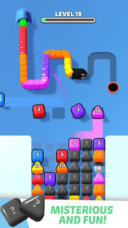1. 玩家需通过策略性摆放数字方块来攻击彩色砖块蛇,阻止它抵达终点,从而获得独特的闯关体验。