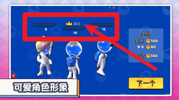 3. 每局战斗结束后,系统会展示所有角色的得分排名情况,其中皇冠标识代表本局获得最高分的角色,角色的表现越出色,所能获得的金币奖励就会越丰厚。