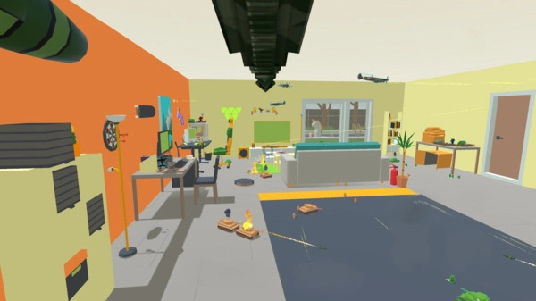 1、战场被设定在客厅、厨房、卧室这类熟悉的家居场景里,道具在各个房间之间穿梭飞行,处处洋溢着生活的趣味;