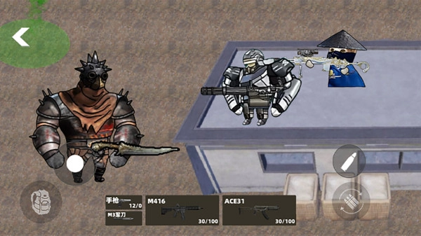 3、武器系统十分丰富,涵盖了近战的扳手以及远程的狙击枪,玩家能够自由搭配各类装备,并且还能拾取到烟雾弹、急救包之类的特殊道具。