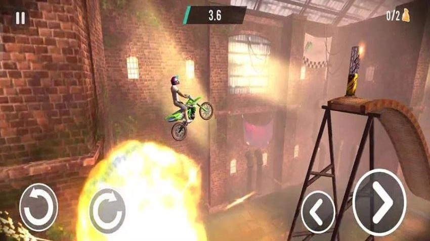 1、在屏幕上左右滑动可以操控机车转向,向上滑动能让摩托腾空跃起,从而展现出炫酷的空中特技。