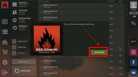 4、在游戏过程中,你能够随时和其他玩家展开交流。只需点击界面右上角的社交按钮,即可与服务器内的其他玩家取得联系,选择合作还是对抗完全取决于你。