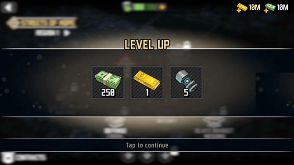1、启动《最后的希望3》最新版本并进入游戏,界面右侧的红色按钮用于显示任务提示,右上角则呈现金币与钞票的数量。