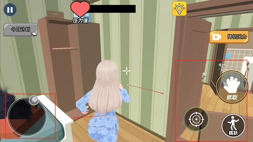 2、左侧设有控制移动的虚拟摇杆,右侧则配置互动按钮,可用于执行开门、上厕所、换装、进食等操作,整体界面简洁,功能清晰明确。