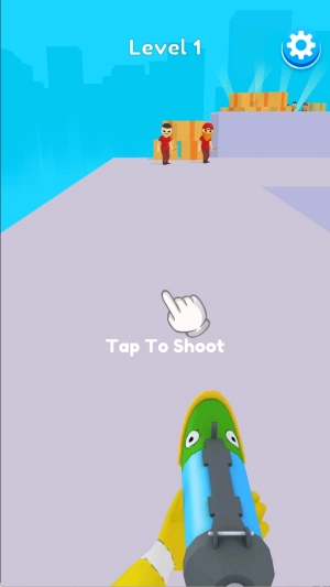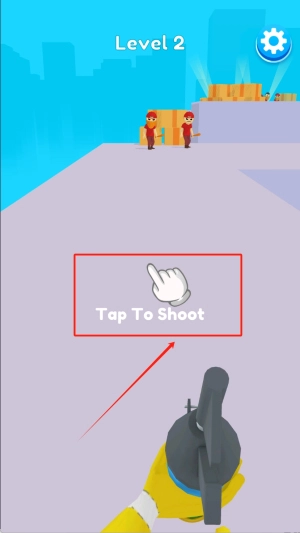 3、进入“Level 2”后留意红框内“Tap To Shoot”的提示,点击指定位置射击高处的敌人,一步步推进城市关卡。