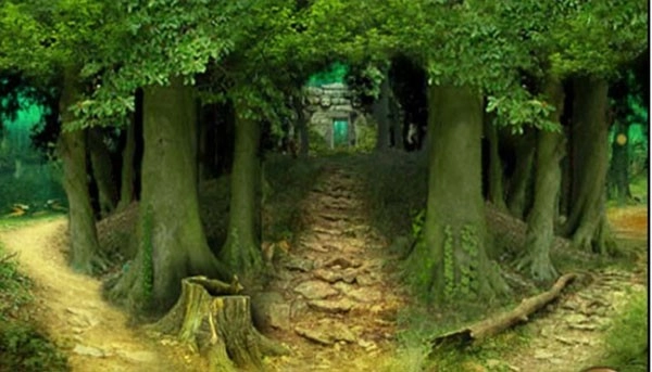 5、借助场景9里树上的梯子,我们能进入场景10,在场景10中可以捡到一卷绳子,而在场景12的断掉的树桩里,我们能找到一个塞子。