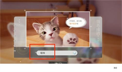 3、接下来为您的爱宠取一个独特的名字,确认后便成功完成领养手续。