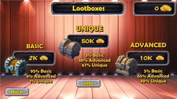 3、LOOTS是充值相关的列表,玩家可以依据自身的喜好程度来决定是否进行充值。