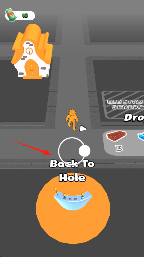 1、点击“BackToHole”,进入废品场,操控角色靠近垃圾,触发吸附功能来收集基础废品。