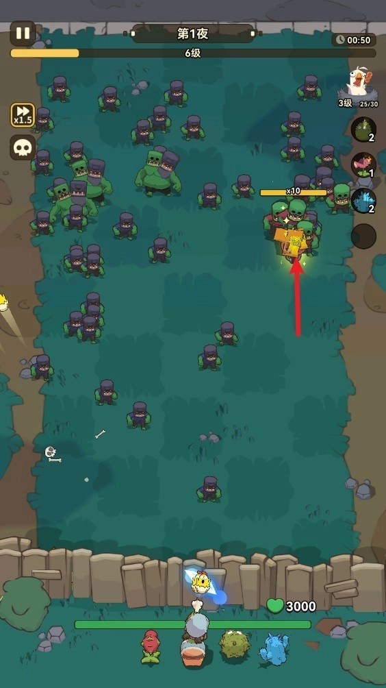1、开局默认由一名角色发起攻击,消灭僵尸能积累经验,逐步提升等级。