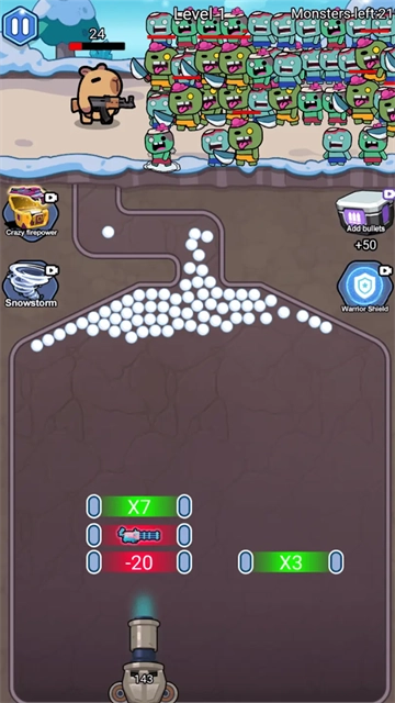 在《雪球 - 子弹倍增器》里,玩家将操控萌趣的水豚,借助雪球枪抵御一波接一波的怪物侵袭!这款游戏的玩法是怎样的呢?可爱的卡皮巴拉会用雪球枪清扫不断袭来的怪物。你可以通过增加子弹数量来升级装备,以此强化对怪物的射击效果,还能利用战士盾牌来保护自身安全。