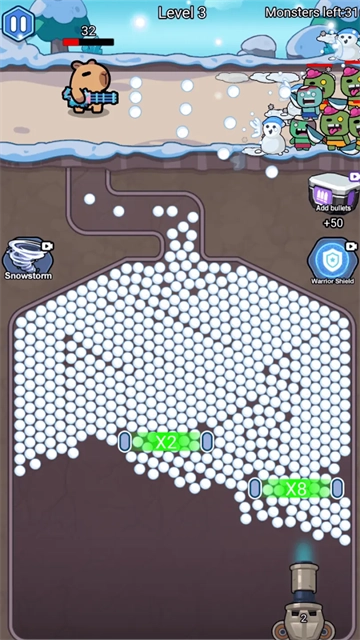 3、部分敌人或许移动速度更快,玩家得借助倍增的雪球子弹展开范围攻击才能击中它们。