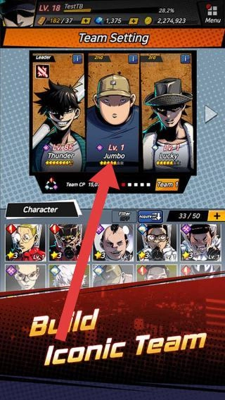 3、进入队伍设置界面,挑选“Jumbo”这类角色,组建“Iconic-Team”阵容,通过调整队员配置、优化搭配组合,来向更高难度的挑战发起冲击。