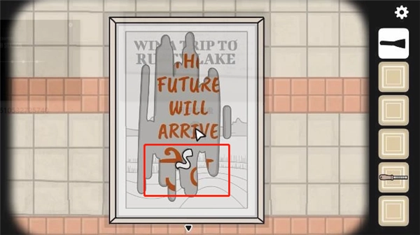 6、在婴儿车旁的场景中有一张海报,用铲子刮烂这张海报后,会看到“THE FUTURE WILL ARRIVE”,其含义是未来即将到来。随后,海报底部会显现出一个神秘符号。